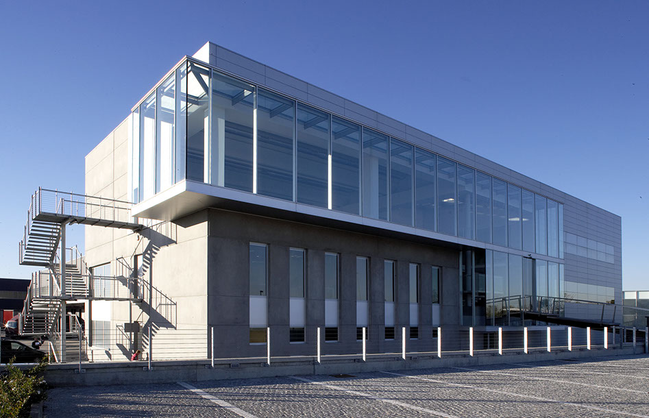 La palazzina uffici si colloca sul fronte principale del lotto, con una forte connotazione tecnologica rappresentativa dell'attività dell'azienda, impegnata nei settori della strumentistica di precisione e carpenteria metallica.